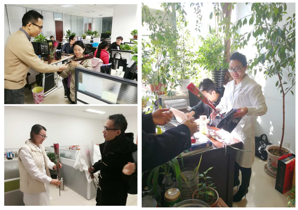 今天一大早,人力資源部門就準備好了節(jié)日的禮物,杭州總部、北京中心、青島中心的好絡(luò)維男團們也早早準備好了向好絡(luò)維女神們 “表白”,為此還引起了一陣小小的騷動。原來,公司女神數(shù)量有限,男團成員太多,眾好漢經(jīng)過商議決定采取“抓鬮”選取幸運者,抽到者喜氣洋洋,一朵鮮花、一份禮物,一句祝福,暖的工作中雷厲風(fēng)行的“女漢子”們個個嬌羞柔媚,喜笑顏開。