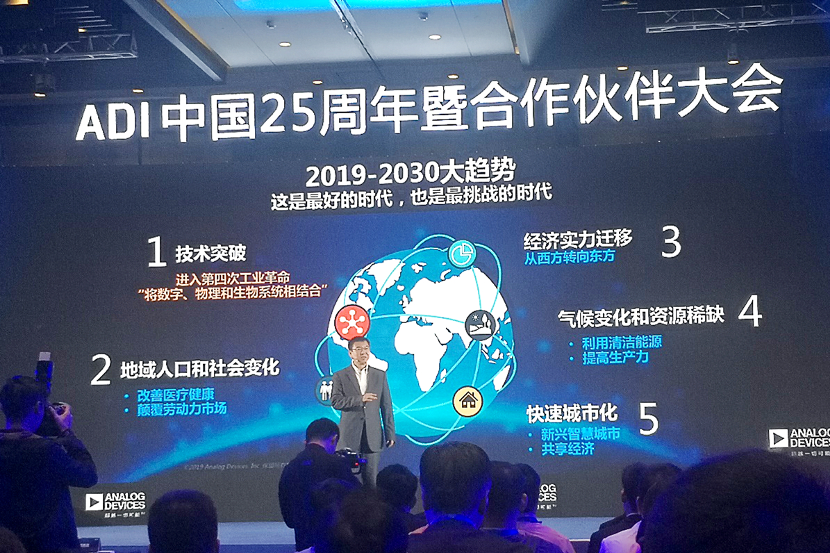 2019年10月24日,Analog Devices, Inc.(以下簡稱ADI)在江蘇無錫市舉辦“ADI中國25周年暨合作伙伴大會”。產(chǎn)業(yè)融合、相互滲透,ADI搭建連接現(xiàn)實(shí)與數(shù)字世界的智能化橋梁,與中國客戶攜手25年,在工業(yè)、通信、交通、醫(yī)療,消費(fèi)電子每一個領(lǐng)域都留下了共同推動產(chǎn)業(yè)創(chuàng)新的足跡。