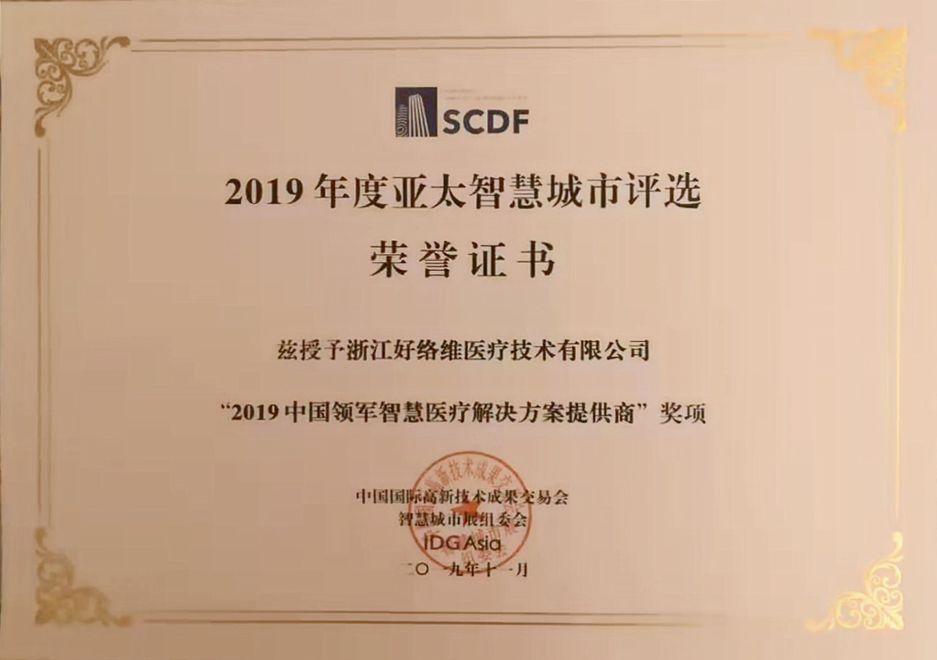 此次“2019亞太智慧城市評選”由IDG亞洲攜手業(yè)內專家共同參與以中立的立場、專業(yè)的角度、嚴謹?shù)脑u選體系和精準的行業(yè)分析為基礎,涵蓋“2019亞太領軍智慧城市、2019中國領軍智慧城市、2019亞太領軍智慧城市服務商、2019中國領軍智慧城市服務商”等眾多綜合以及單項獎。旨在全面展示和表彰亞太區(qū)當下具代表性的智慧城市建設案例、有實力的智慧城市服務供應商,分享成功經(jīng)驗,為智慧城市建設選擇合適的服務商提供幫助和建議。好絡維榮獲“2019中國領軍智慧醫(yī)療解決方案提供商”殊榮,不僅是對好絡維在智慧醫(yī)療領域做出的努力與工作給予的積極肯定,更是表明好絡維在智慧醫(yī)療體系建設上又向前邁進了一大步。