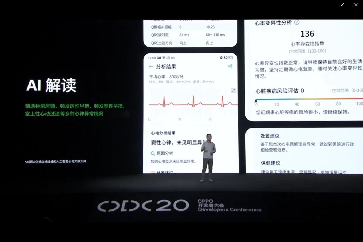 大會(huì)現(xiàn)場(chǎng),由OPPO新興穿戴產(chǎn)品規(guī)劃部總監(jiān)許琨以“科技引領(lǐng) 智慧創(chuàng)新 - 開啟健康生活新方式”為主題演講,并重磅發(fā)布了好絡(luò)維與OPPO的心電服務(wù)合作。