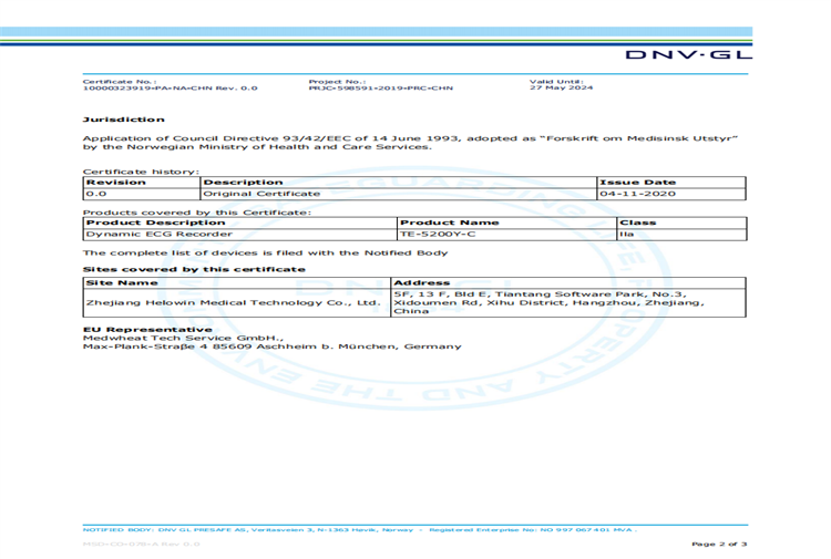 • 醫(yī)療器械質(zhì)量管理體系認證證書ISO13485:2016