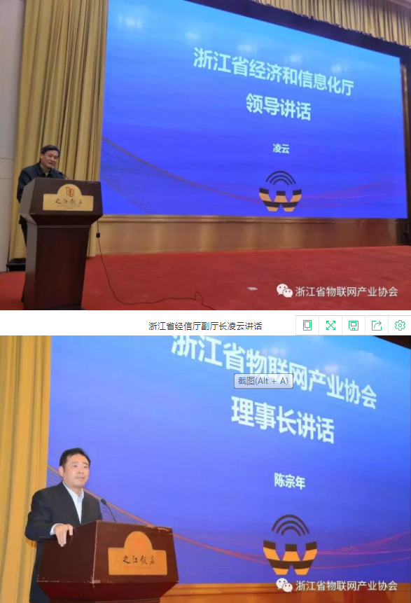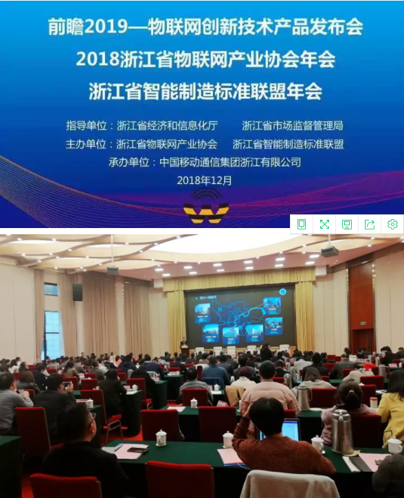 12月19日,前瞻2019——物聯(lián)網(wǎng)創(chuàng)新技術(shù)產(chǎn)品發(fā)布會暨浙江省物聯(lián)網(wǎng)產(chǎn)業(yè)協(xié)會及浙江省智能制造標(biāo)準(zhǔn)聯(lián)盟年會在杭州之江飯店盛大舉行。浙江省經(jīng)信廳副廳長凌云、技裝處處長李永偉、浙江省物聯(lián)網(wǎng)產(chǎn)業(yè)協(xié)會理事長陳宗年等領(lǐng)導(dǎo)及300多位會員老總代表參加會議。