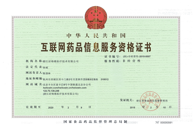 互聯(lián)網(wǎng)藥品信息服務(wù)資格證書[(浙)-非經(jīng)營性-2015-0007]